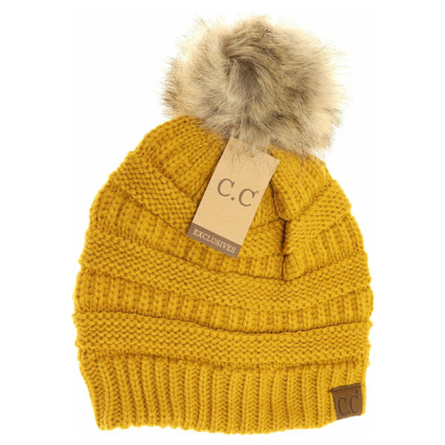 Fuzzy Lined Fur Pom CC Beanie YJ820