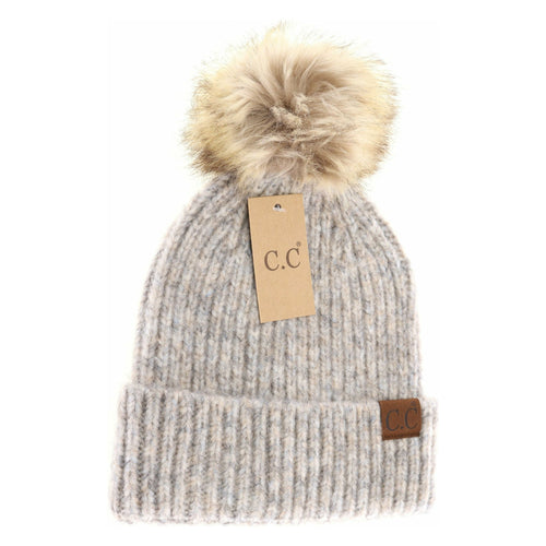 Soft Ribbed Fur Pom C.C Beanie HAT2074