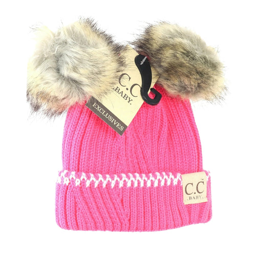 BABY Solid Knit Double Fur Pom Beanie BABY920POMPOM