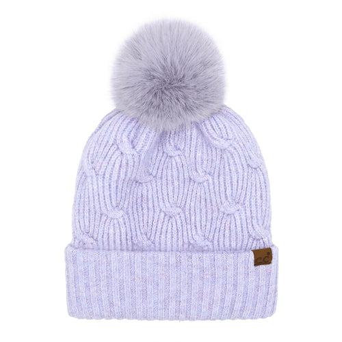 Double Braided Knit Faux Fur Pom Beanie HAT3478