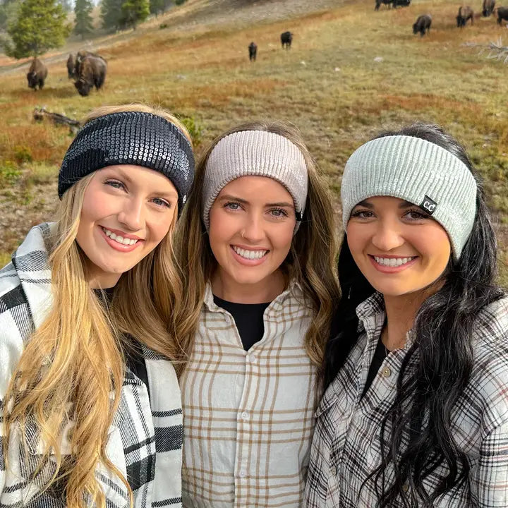 A head wrap showing off this season's hot trend - sequins!  This head wrap is a clean and trendy look that keeps your ears and head warm in style!